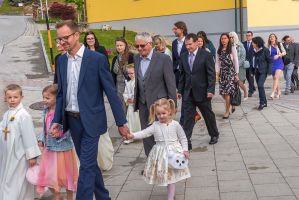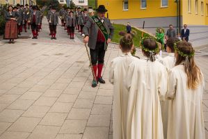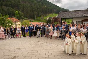 Die örtliche Musikkapelle geleitete die Erstkommunionkinder und deren Familien zur Kirche und nach dem feierlichen Gottesdienst ins Gemeindehaus, wo es noch eine Jause gab.