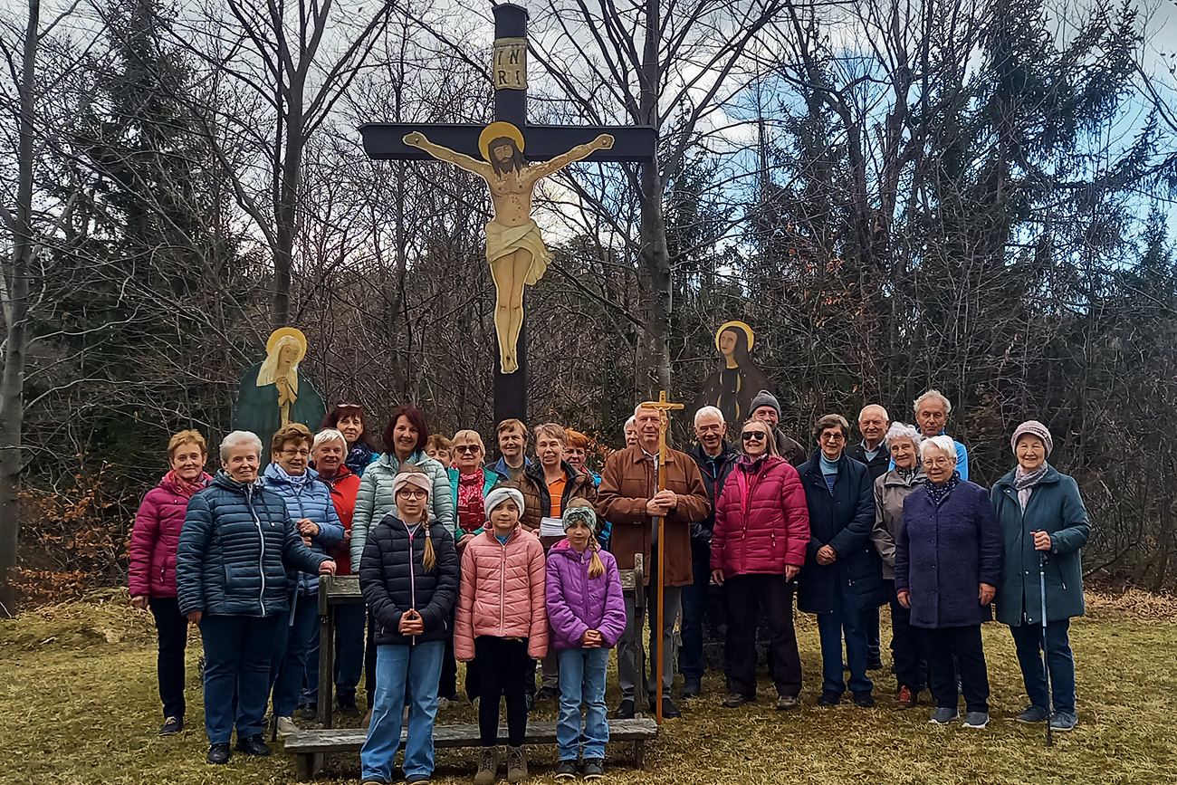 Das Besondere daran ist, dass der Kreuzweg im Freien stattfindet. Dabei geht man auf den Kalvarienberg, der nicht nur sehr schöne Kreuzwegbilder, sondern auch eine tolle Aussicht auf die Umgebung bietet. Vielen Dank an Gottfried Kaghofer und Franz Grabner, die die Kreuzwegstationen neu renoviert haben.