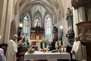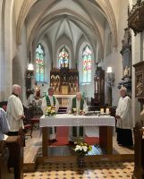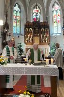 Am Sonntag, 16. Juli 2023, feierten wir in der Hl. Messe, musikalisch begleitet von einem Bläserquintett des MV Schottwien, den 90. Geburtstag unseres Pfarrvikars Friedrich Schauer. Wir gedachten dabei auch, dass er nächstes Jahr bereits seit 60 Jahren in Schottwien wirkt. Dazu passend assistierten 2 Ministranten, welche vor über 50 Jahren auch schon am Altar standen. Die beiden Bürgermeister von Schottwien und Breitenstein sowie Vertreter der Pfarrgemeinde dankten in ihren durchaus launigen Ansprachen dem Jubilar für sein langjähriges Wirken. Anschließend wurde beim Heurigen der FF Schottwien weiter gefeiert.