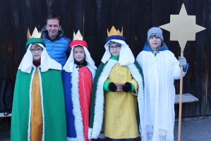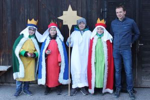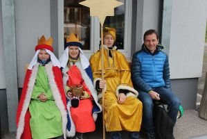 Dabei brachten sie den Segen in die Häuser und zu den Menschen unserer Pfarre. Segen brachten die Sternsinger auch notleidenden Menschen in den Armutsregionen dieser Welt. Mit den Spenden, die ca. 85.000 Kinder in Österreich sammeln, werden jährlich rund 500 Projekte unterstützt. Die Könige und Königinnen unserer Pfarre konnten heuer € 11.632,-- sammeln, dass andere Kinder ein Zuhause haben oder eine gute Ausbildung bekommen und damit die Chance auf eine bessere Zukunft.