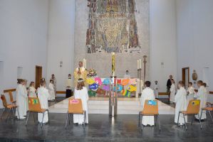 Die Feier fand erstmals wegen des größeren Kirchenraumes und der geltenden Maßnahmen aufgrund der Corona-Pandemie nicht in der Kirche in Stuppach, sondern in der Christkönigskirche statt.
