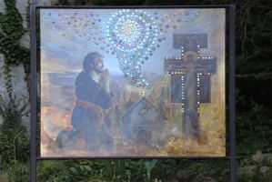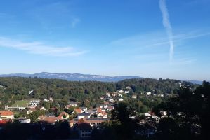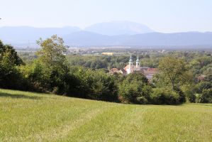 Vom Franziskusweg im südlichen Niederösterreich gibt es eine längere und eine kürzere Version. Wir haben eine Kombination von beiden gewählt. Ausgangspunkt ist in jedem Fall Pitten. Der Weg beginnt unweit des Zentrums und führt über die Desbordesstiege hinauf zur Bergkapelle. Auf dem Weg kann man eine Skulpturen zum Sonnengesang und einige Darstellungen aus dem Leben des Heiligen betrachten. Von der Bergkirche kann man den wunderschönen Ausblick auf "unsere" Berge (Sonnwendstein, Rax, Schneeberg, Hohe Wand, ...) genießen. Weiter geht es hinauf am Schloss Pitten vorbei über Wiesen und Felder nach Bad Erlach. Im Zentrum zweigt man auf einen netten Weg durch den Auwald ab. Weiter der Leitha entlang durch den Auwald und über einen Radweg erreicht man Lanzenkirchen und Frohsdorf.