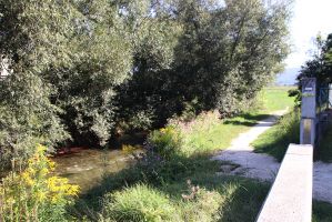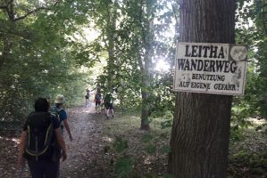 Im Gedanken sind wir schon beim Pfarrfest, dass glücklicherweise an unserem Wallfahrstag in Lanzenkirchen stattfindet. Nach einer ausgiebigen Stärkung und einem Flucht-Achterl mit Kaplan P. Nestor, geht es der Leitha entlang zu derem Ursprung, wo die Schwarza auf die Pitten trifft. Über einen Feldweg erreichen wir Bad Erlach, wo uns der "Gläserne Kreuzweg" auf den Waldfriedhof führt. Über den "Krampenstein" (mit Ausblick auf die Kirche von Schwarzau im Steinfeld) und den Park des Genesungs-, Wohn- und Pflegeheims "Mater Salvatoris" in Pitten kommen wir zurück zum Ausgangspunkt. Vorher besuchen wir noch die Pfarrkirche mit dem Pfarrhof und den diese umgebenden Rosengarten.