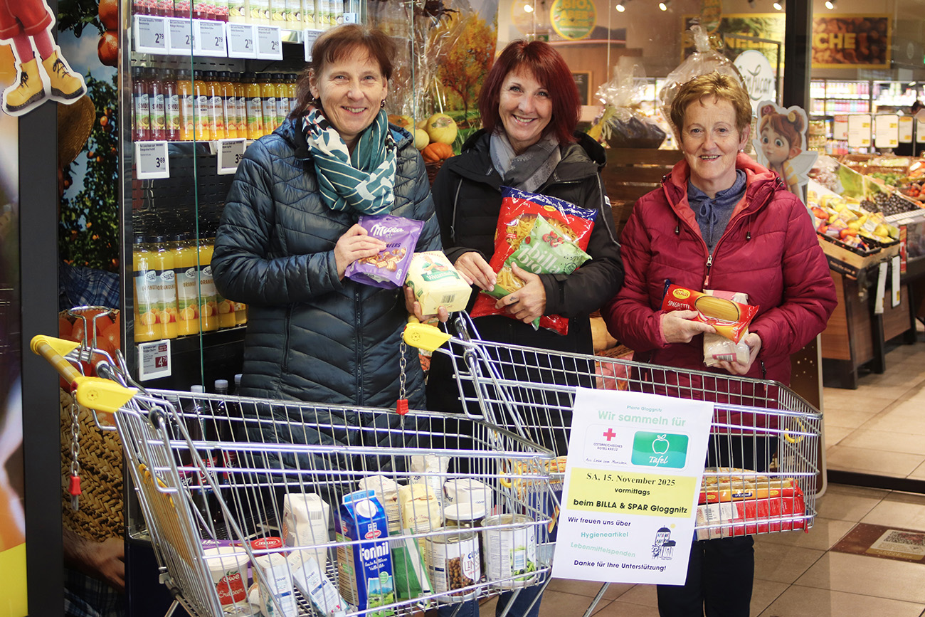 Lebensmittelsammlung für Tafel Österreich und Palatschinken essen für Caritas