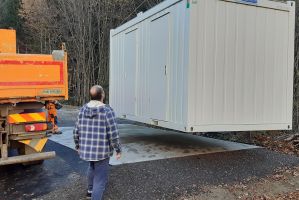 Die Pfarrgemeinde Kranichberg hat den Innenausbau, die diversen Installations- und Anschlussarbeiten sowie die Überdachung des Containers übernommen.