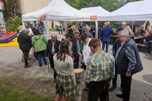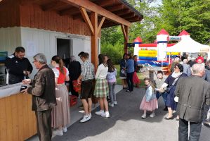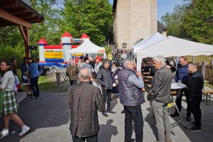 Um 9.00 Uhr gestaltete der Kirchenchor Kranichberg gemeinsam mit Hr. Pfarrer Ernst Pankl die Kirtagsmesse. Nach der gelungenen Messe gings weiter zum Frühschoppen. Bei Leberkässemmerl, Spritzer, herrlichem Wetter und toller Frühschoppenmusik ließ es sich gut verweilen in Kranichberg. Auch die umliegenden Bürgermeister wie Bgm. Ulli Trybus, Bgm. Willibald Fuchs, Vizebgm. Hubert Haselbacher, besuchten die Teilgemeinde. Dank der zahlreichen Mehlspeisenspenden konnten die Ministranten wieder Kaffee und Kuchen verkaufen. Sehr zur Freude der Kleinen war heuer zusätzlich zur Hüpfburg auch ein Kirtagsstandl wieder in Kranichberg vertreten.