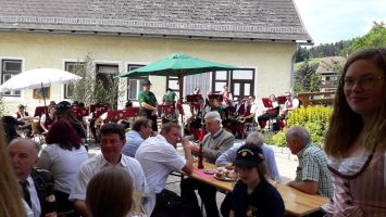 Die Fronleichnamsprozession wurde vom Musikverein musikalisch umrahmt und die MusikerInnen spielten anschließend beim Pfarrkaffee auf.