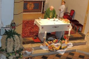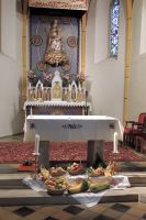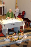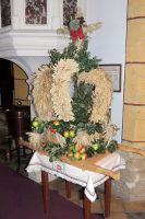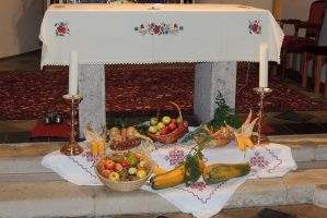 Dank der fleißigen Helfer der örtlichen Bauernschaft wurde die Erntekrone und die Kirche wunderschön geschmückt. Herr Pfarrer Hartl übernahm die Segnung der Erntegaben bei den Messen am 11. Oktober.